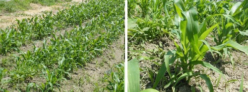 9月13日播種、27日定植された遅蒔きもちとうもろこしの様子です。